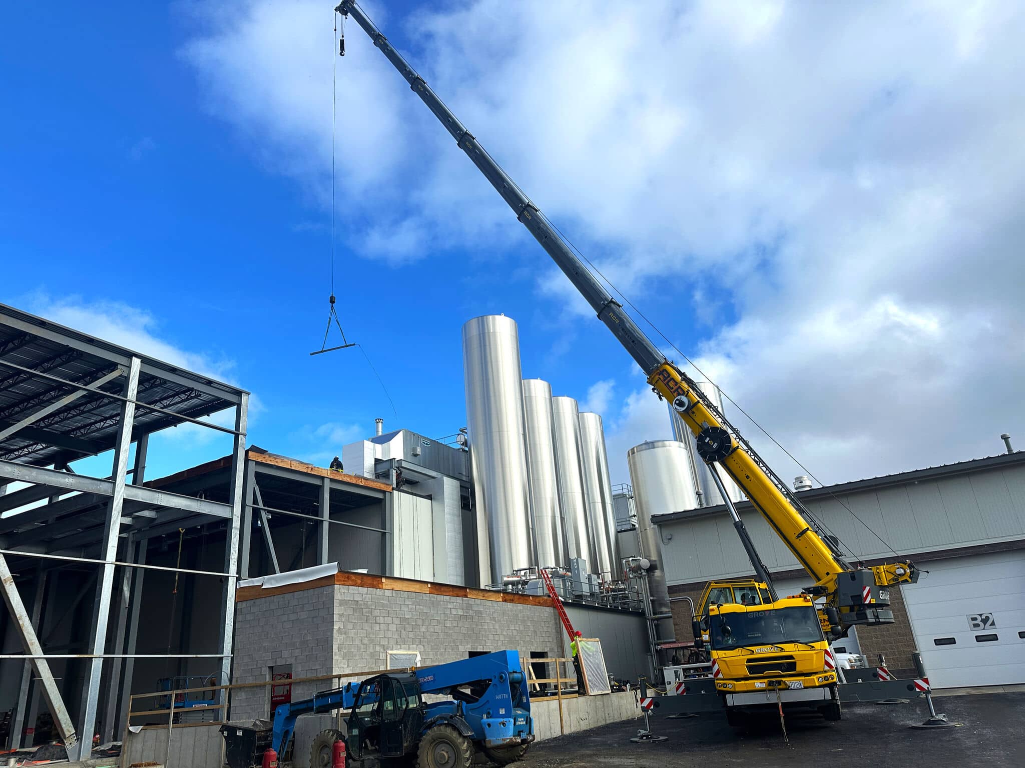This week, 3 silos will arrive for installation at Byrne Cortlandville. Construction has also begun on the block wall for the boiler room, and scaffolding has been erected adjacent to the wastewater management facility.