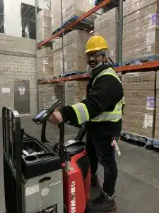 Byrne Cortlandville employee Fred Thomas scans items in the warehouse.
